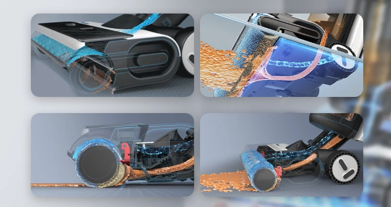 Vsestranski brezžični čistilniki tal za trde površine, odlični za trdovratno umazanijo in živalske dlake, z obojestranskim čiščenjem do roba ter samočistilnim sistemom s centrifugalnim sušenjem.